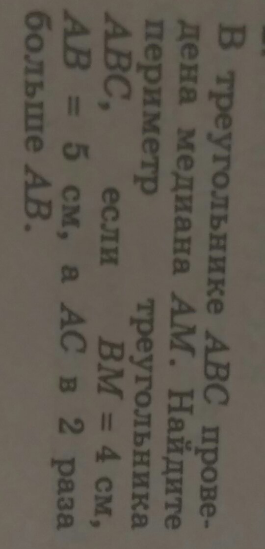 в треугольнике ABC проведена медиана AM.найдите периметр треугольника ABC,если BM=4см AB=5см ,а AC в два раза больше AB