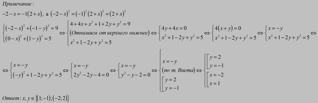 (0-x) в квадрете + (1-y) в квадрате = 5