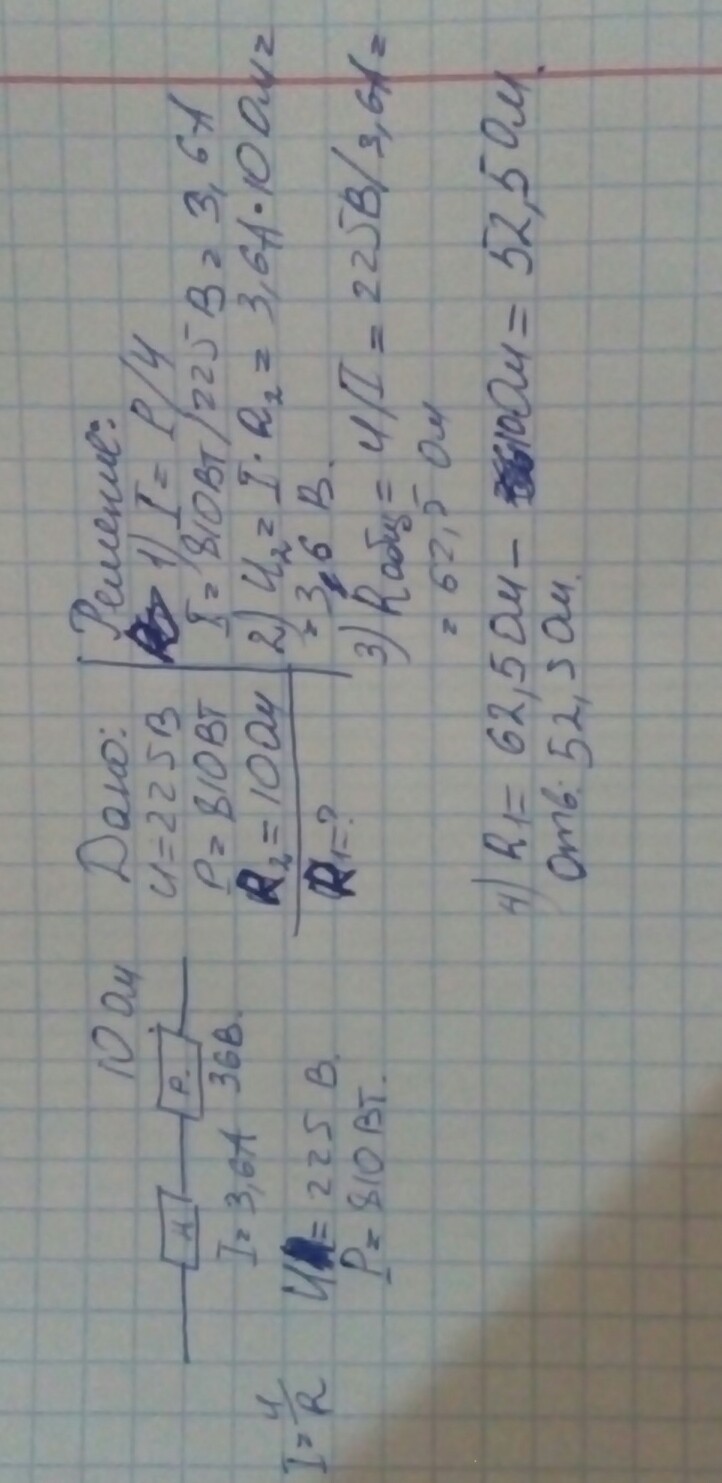 нагреватель включен последовательно с реостатом сопротивлением 10 ом в сеть с напряжением 225 в. Каково сопротивление нагревателя, если мощность электрического тока в реостате составляет 810 вт?