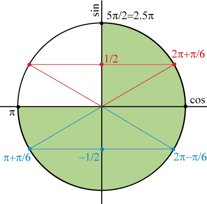 обозначив на кругу, и учититывая нужный указанный промежуток находим корни