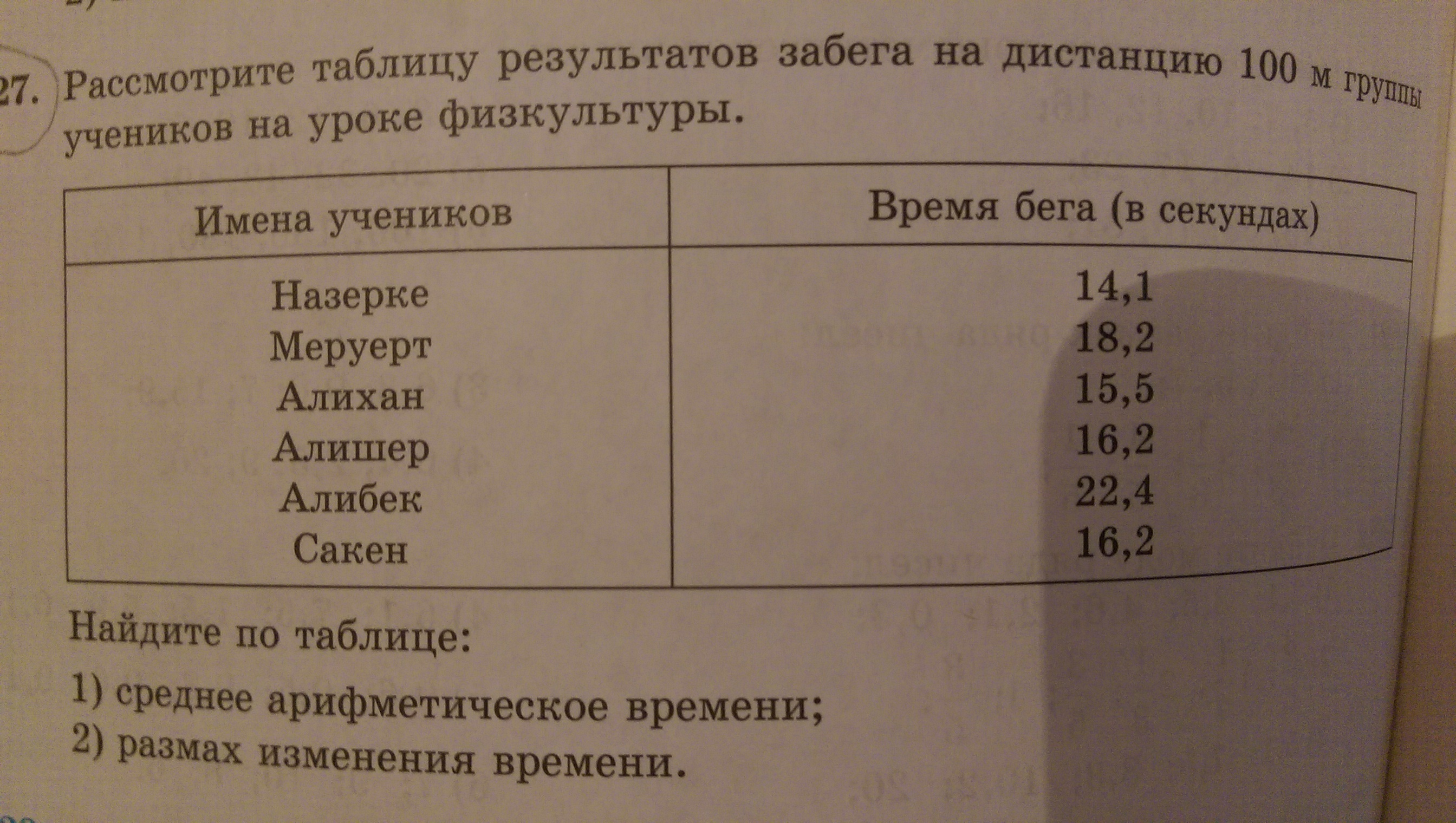 Рассмотрите таблицу результатов забега на дистанцию 100 м группы учеников на уроке физкультура