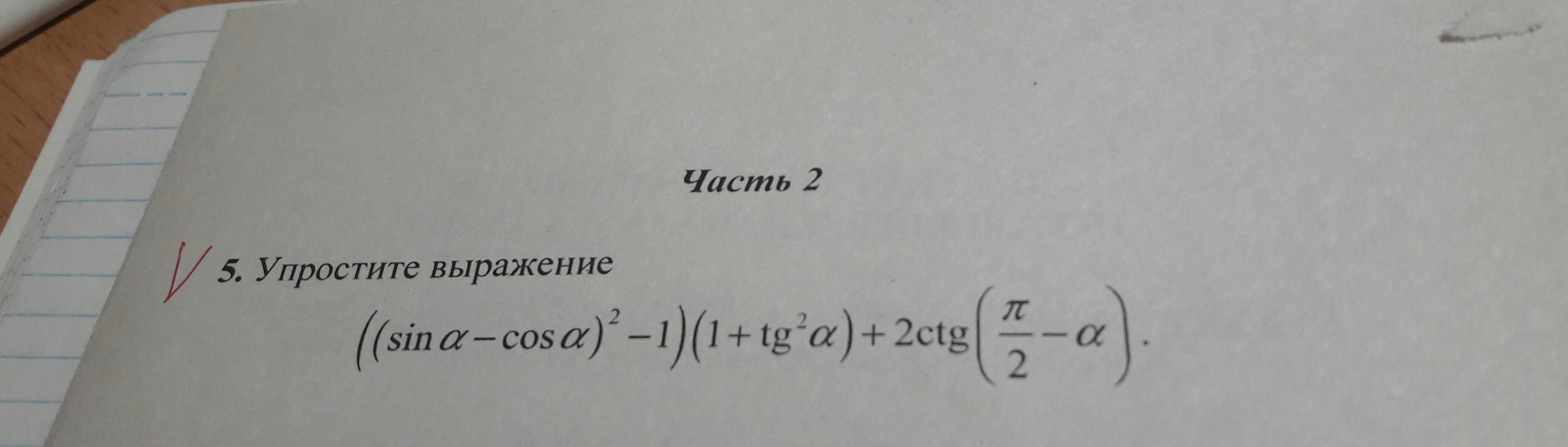 ((sin a - cos a)^2 - 1)(1 + tg^2 a) + 2ctg(pi/2 - a) =