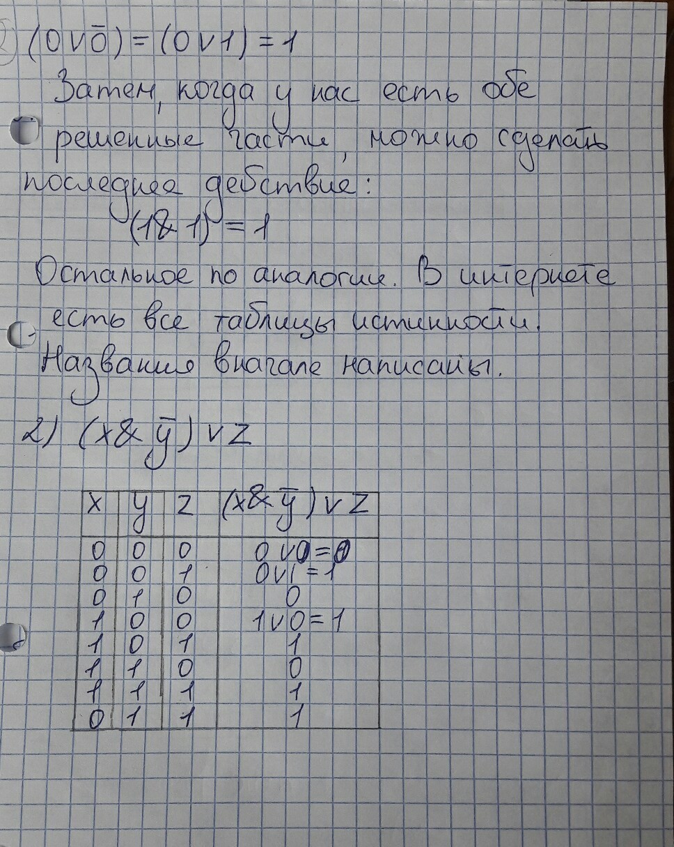 Вроде все расписала, главное пользуйтесь таблицами истинности и знайте приоритет выполнения