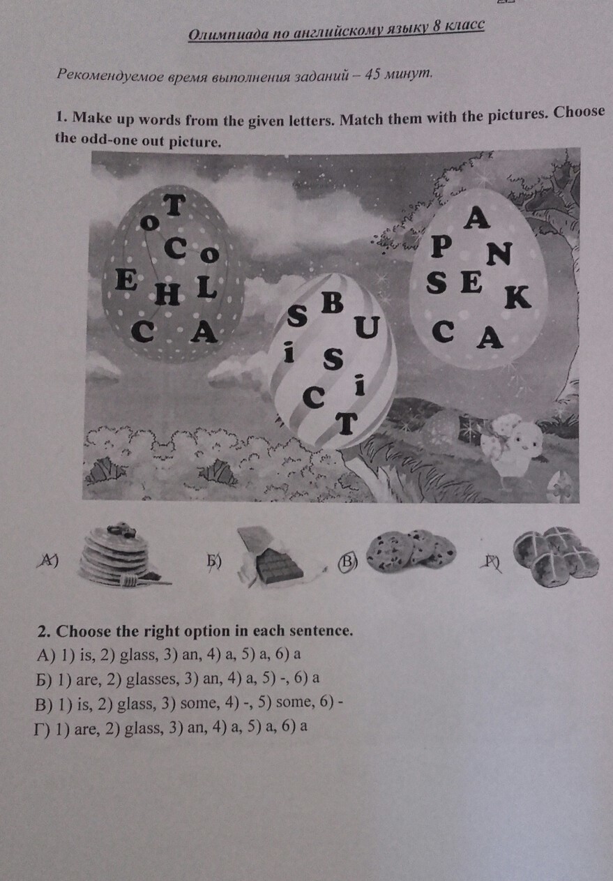 1. A-Chocolate. B Biscuits.C.Pancake.