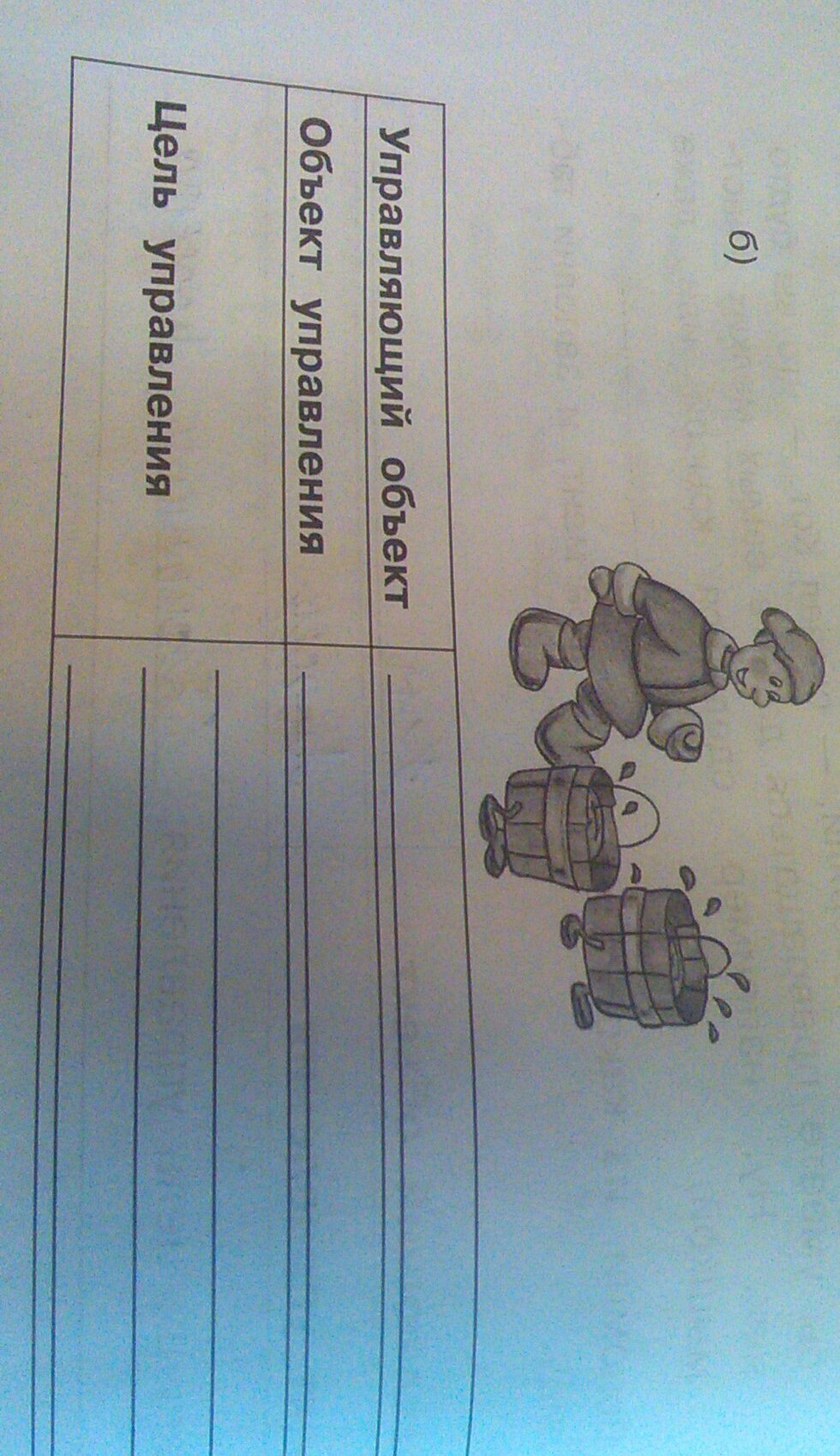 1)Емеля, 2)Ведра с водой, 3)Довести ведра до дома Емели.