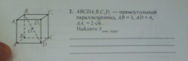 D = 2R = DB1 = √(AB^2+AD^2+AA1^2) = √(9+16+4*6) = √49 = 7