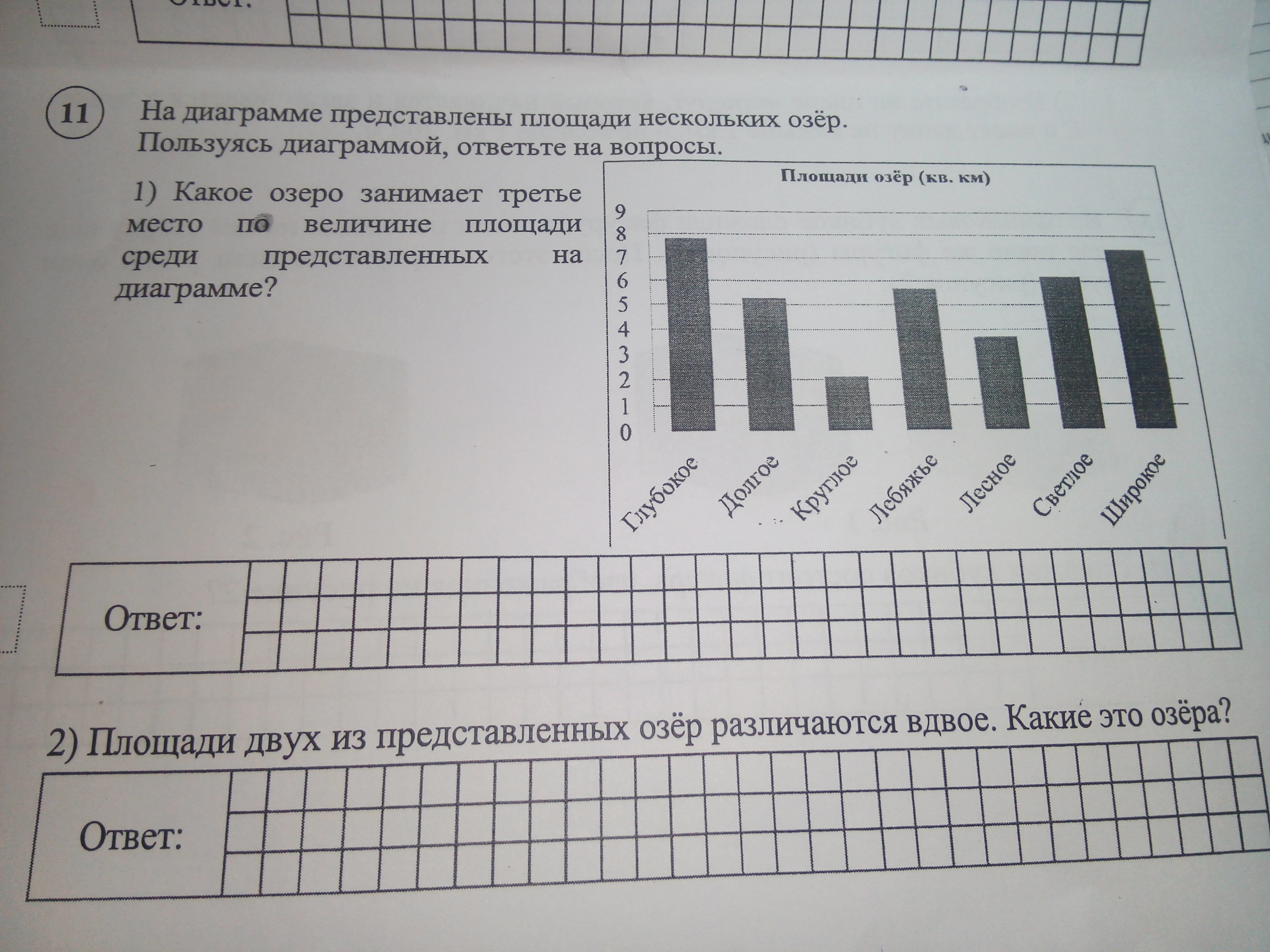 1)светлое озеро занимает 3 место по площади.