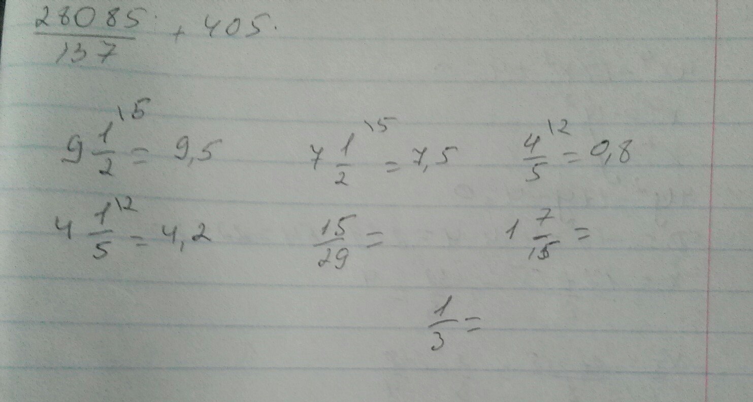 1)9 целых 1/2. 2)4целых 1/5 .3) 7целых1/2 .4) 15/29 .5) 4/5 .6) 1 целая 7/15 .7) 1/3 . перевести в десятичную дробь