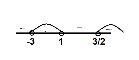 Ответ: (-3;1) и (3/2; + бесконечность).