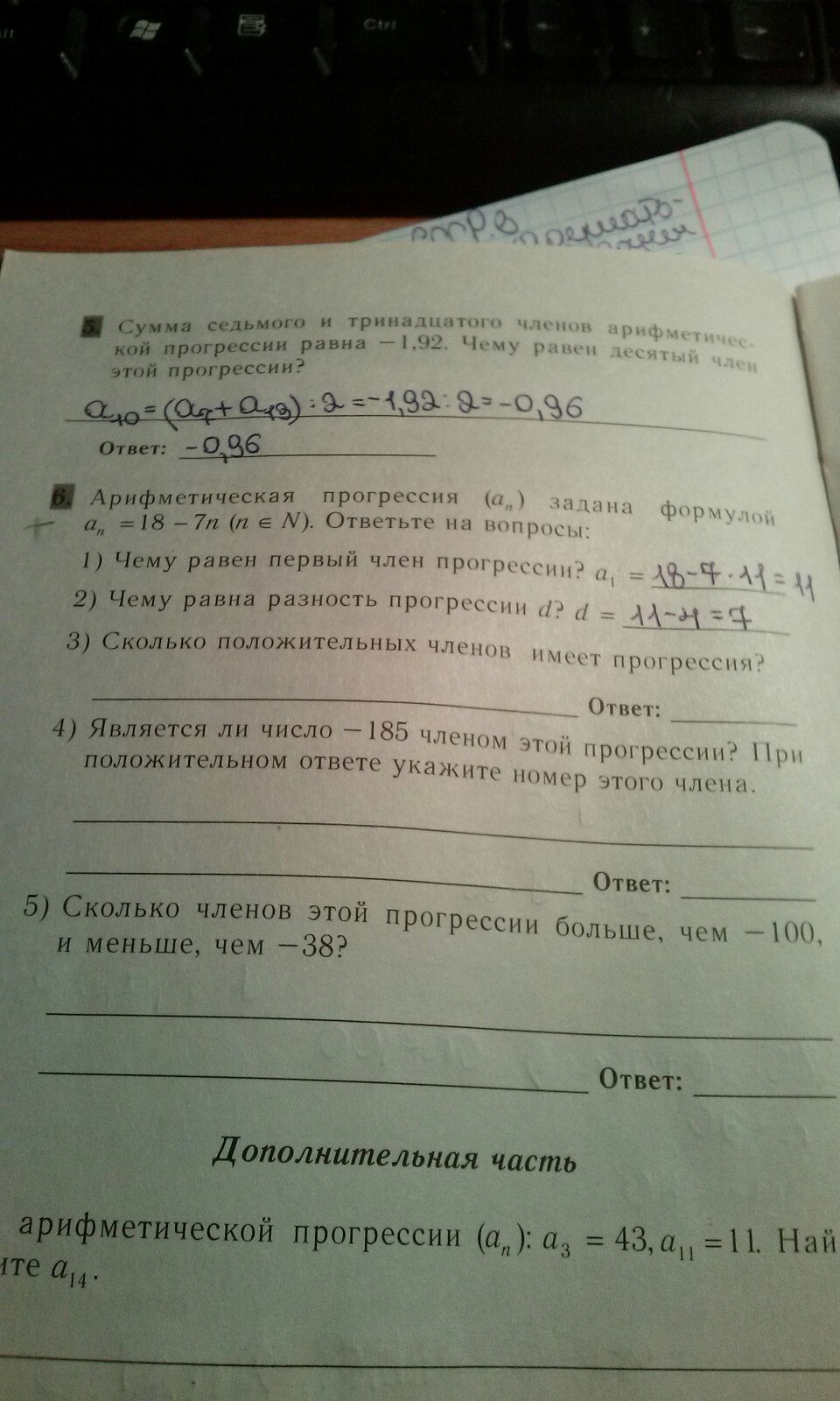 4) -185=18-7n ⇒ 7n=203 ⇒ n=29 (Да является, a29)