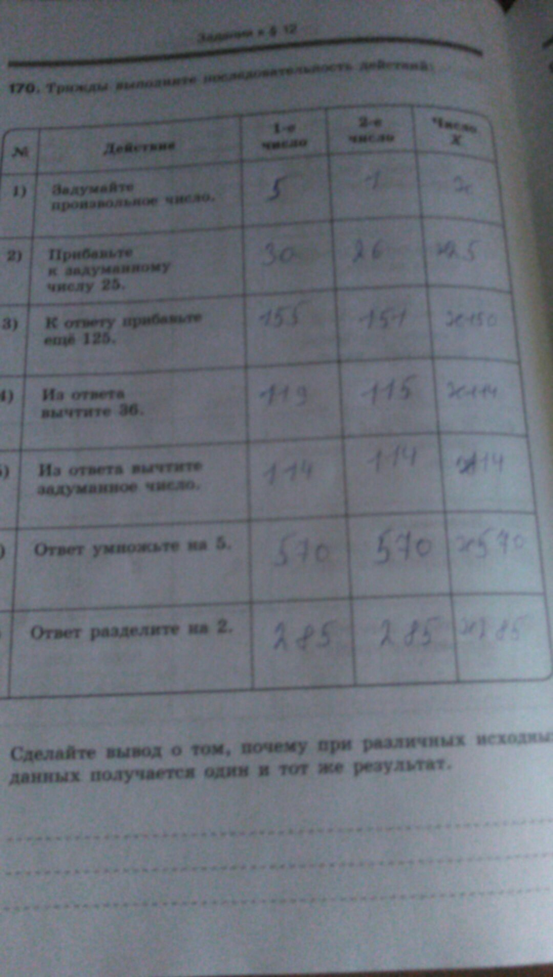 сделайте вывод о том, почему при различных исходных данных получается один и тот же результат: