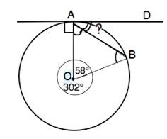 Найдите велечину угла DAB между касательной к окружности и хордой.