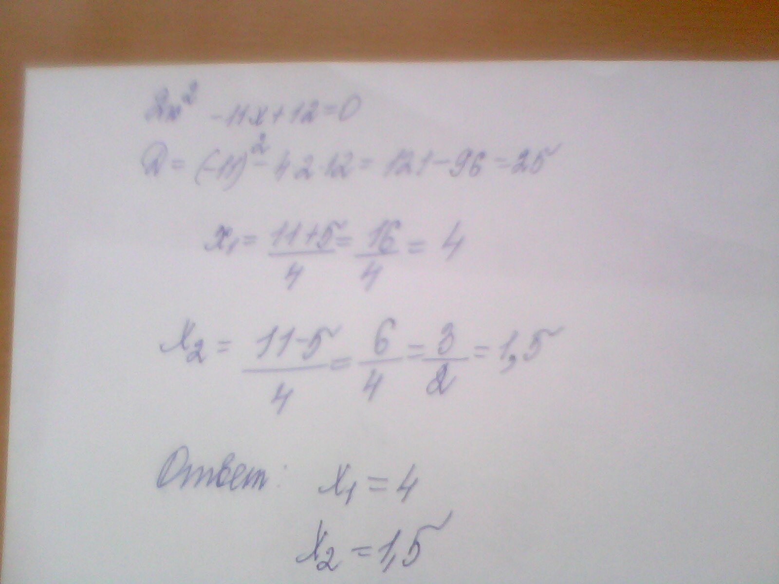 D=(-11)²-4*2*12=121-96=25 (D > 0)