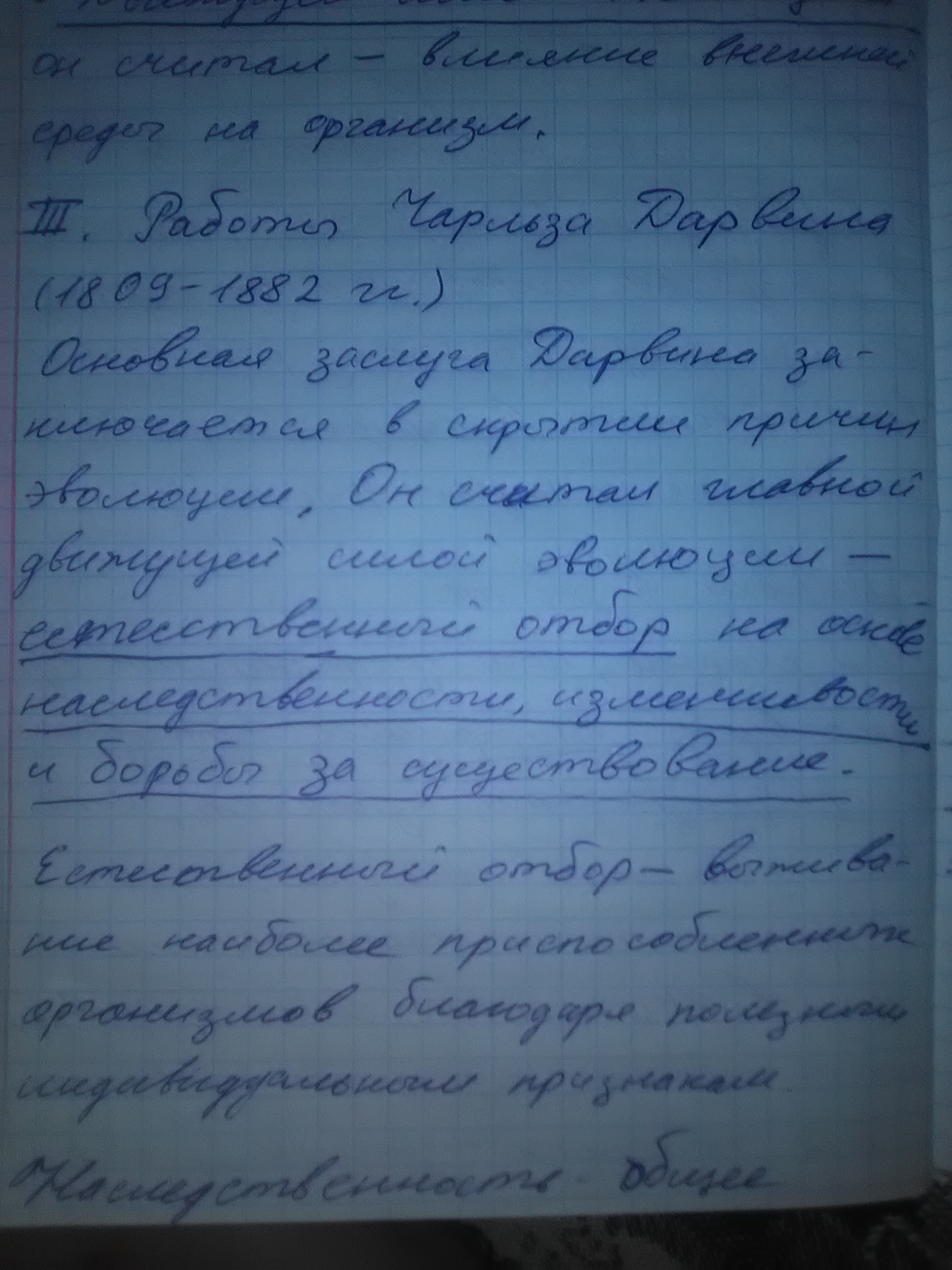 Не успел переписать положения теории Дарвина.