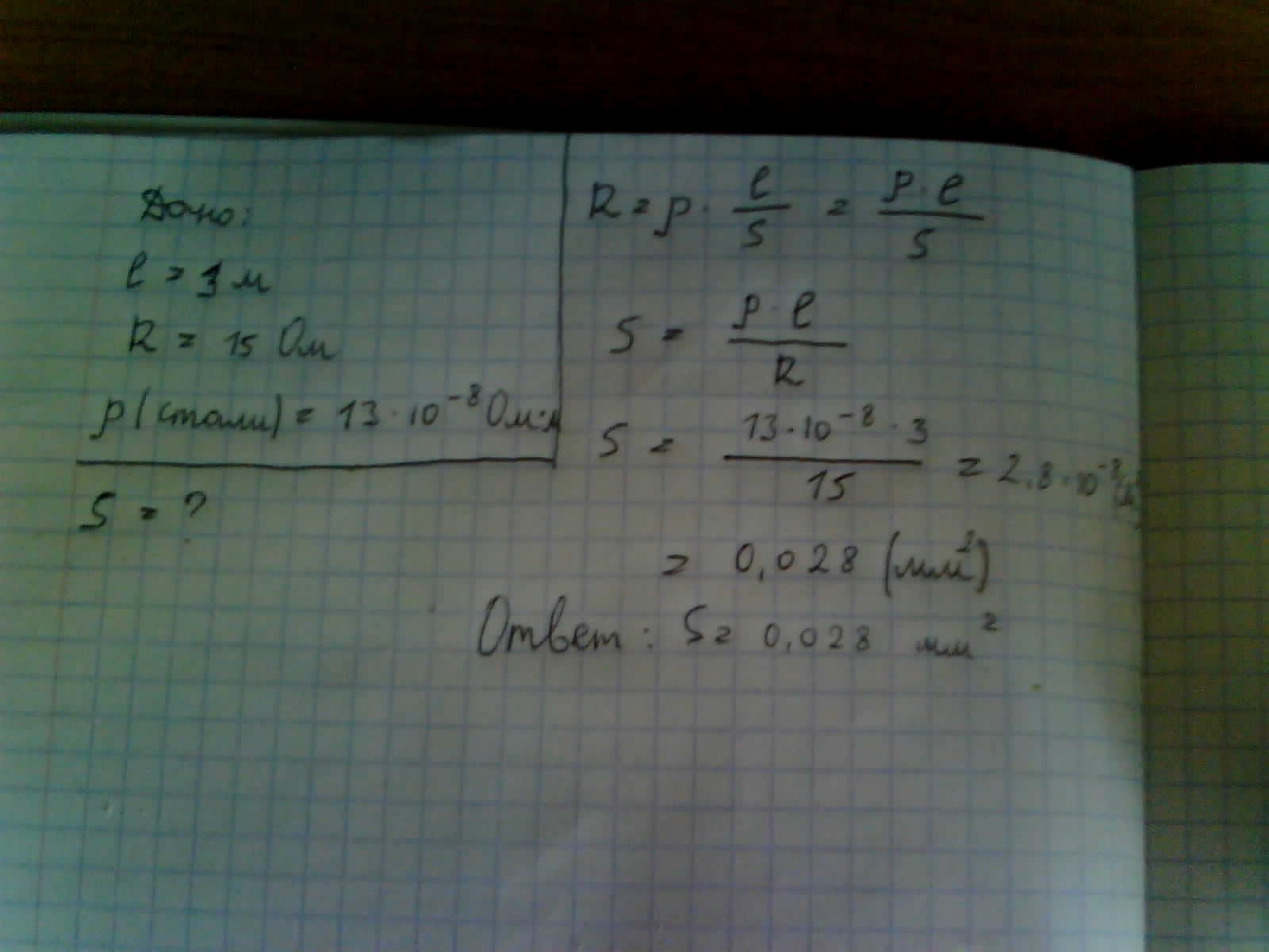 S = ро*l/R S = 0.120*3/15 = 0.024 (мм^2)