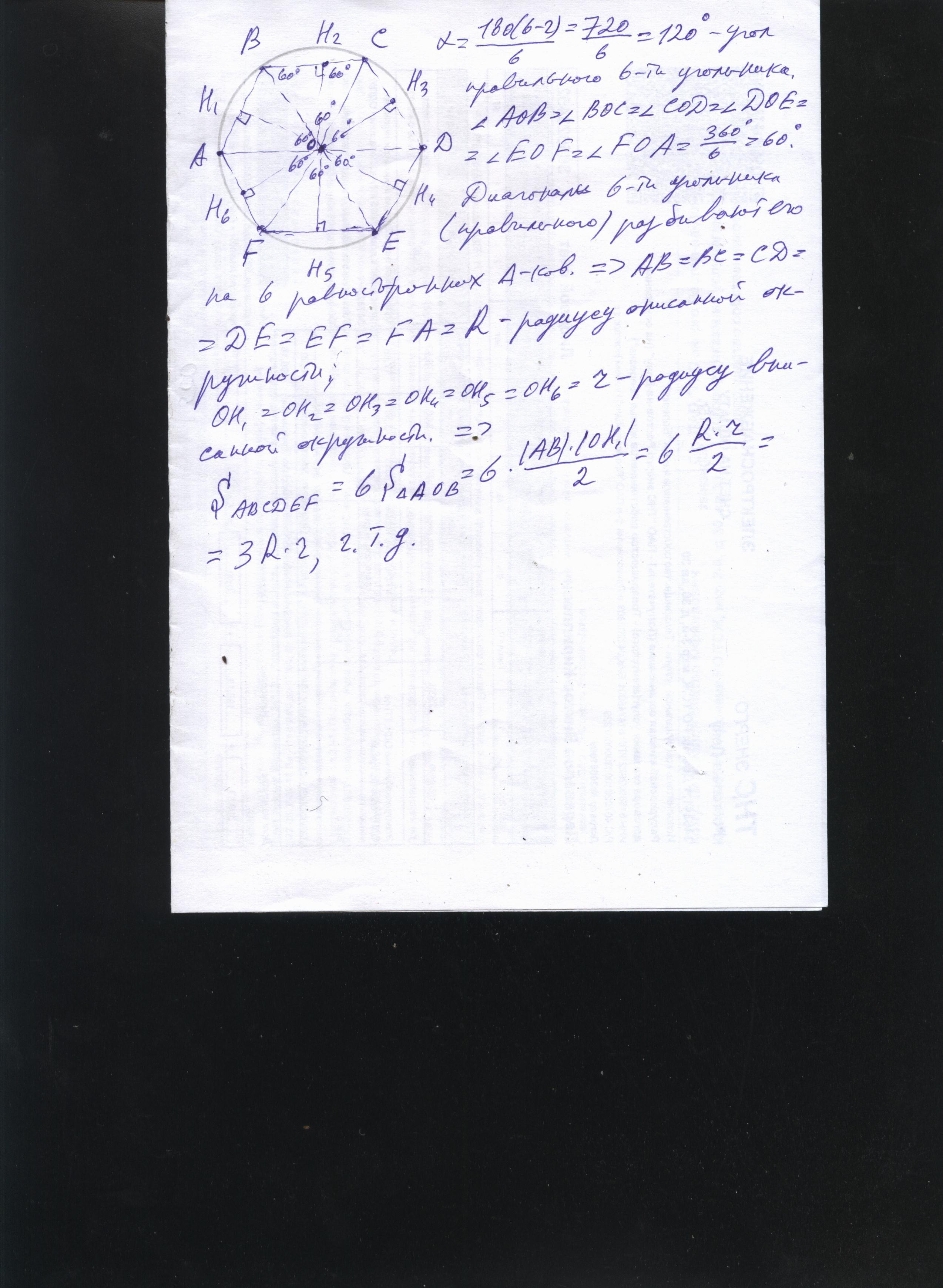 где a длина стороны правильного шестиугольника , O его центр (центр описанной и вписанной окружностей )