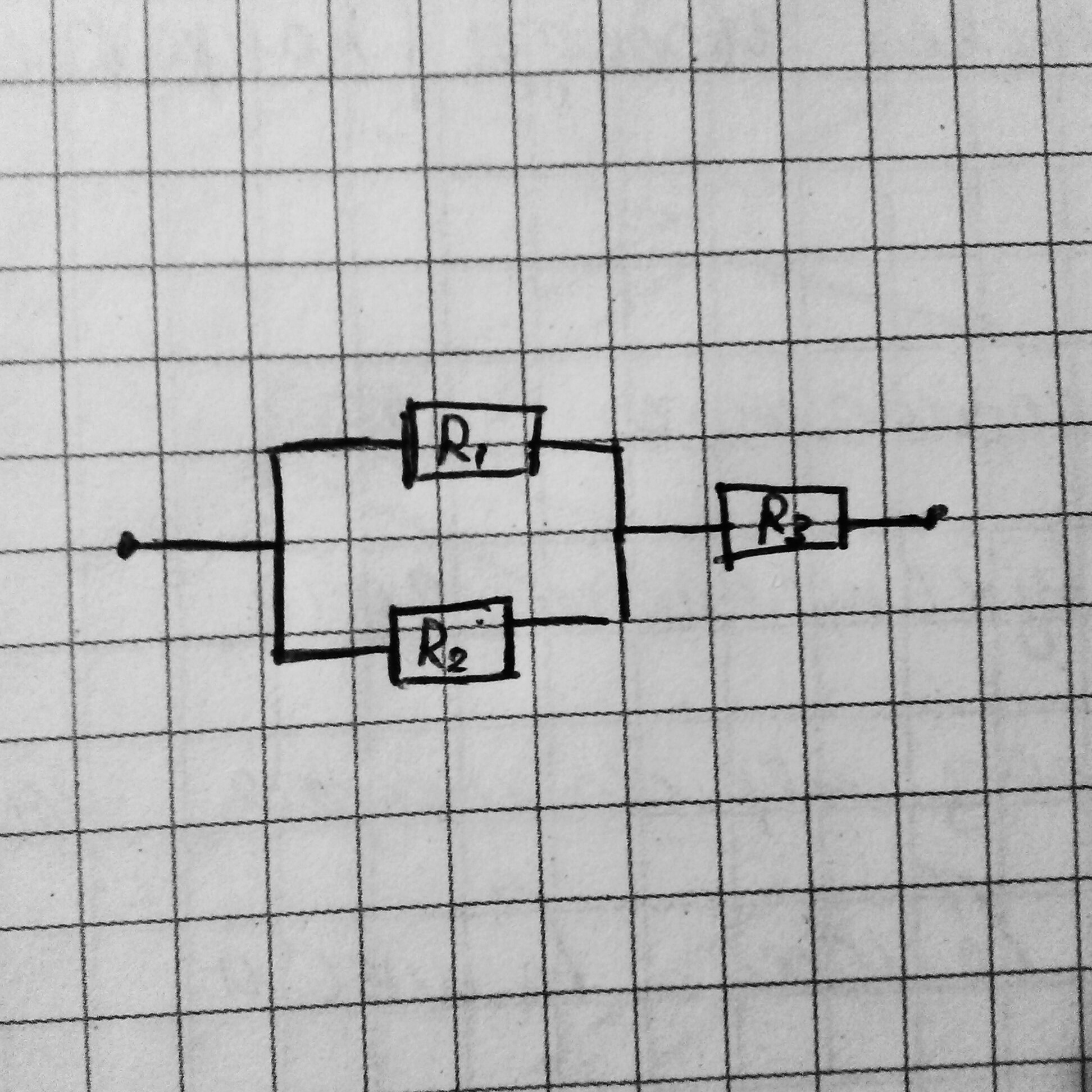 Нужна помощь! Определить ток в сопротивлении если R1 = 1 Ом, R2 = 2 Ом, R3 = 3 Ом, U = 10 В. Цепь на фото
