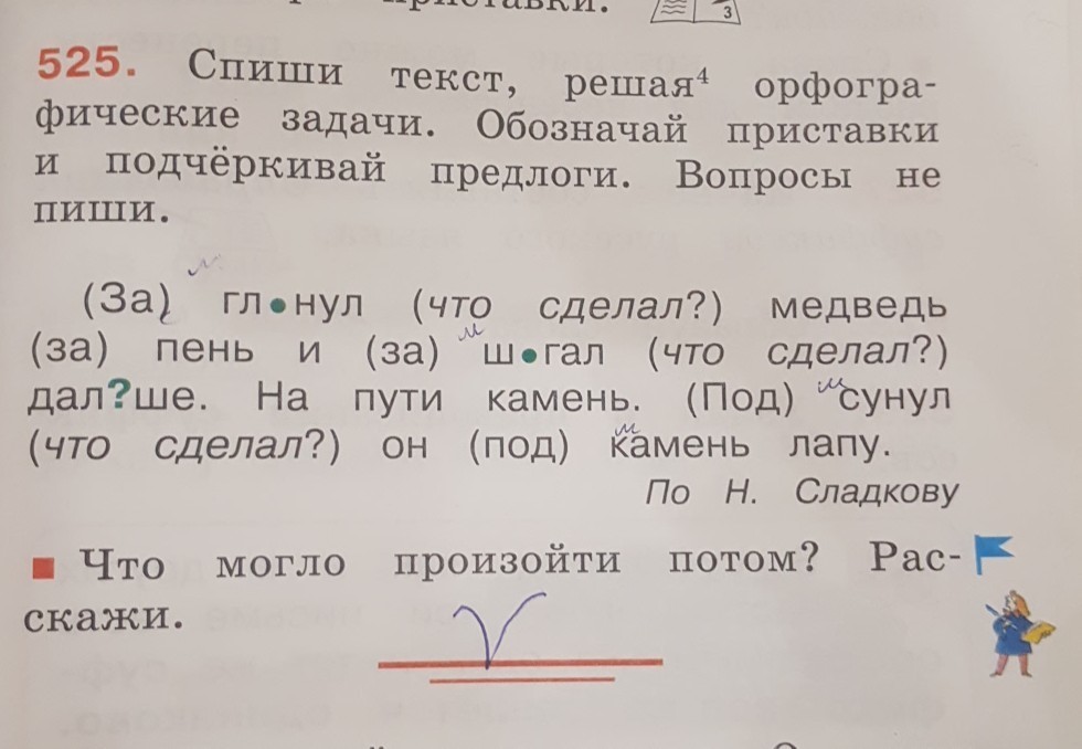 За глянул медведь за пень и за шагал дальше.На пути камень.Подсунул он под камень лапу.