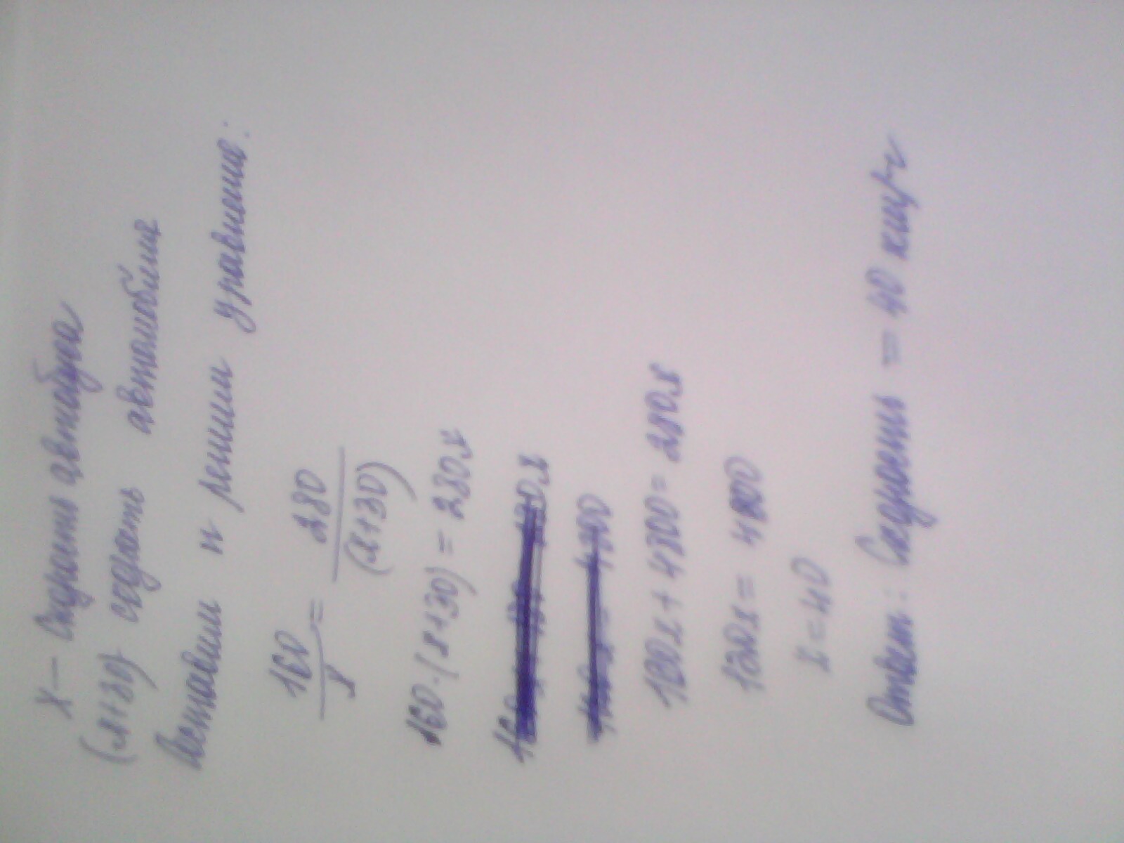 Автобус проходит расстояние 160 км за время, которое автомобиль тратит на прохождение 280 км. Найдите скорость автобуса, если известно, что она на 30 км/ч меньше скорости автомобиля.