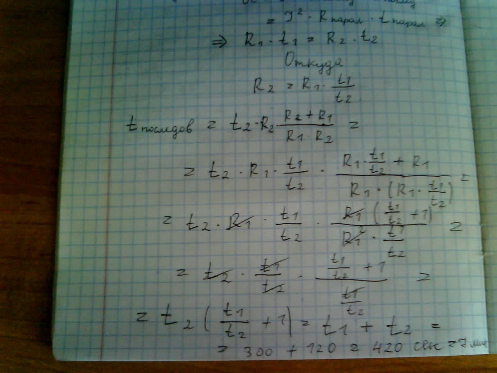 Электрический чайник имеет два подводящих проводника. Если включить первый проводник в сеть питания, то вода в чайнике закипит через 2 минуты, если второй - то через 5 минут. Через какое время закипит вода, если в сеть включить два проводника одновременно а) последовательно, б) параллельно?