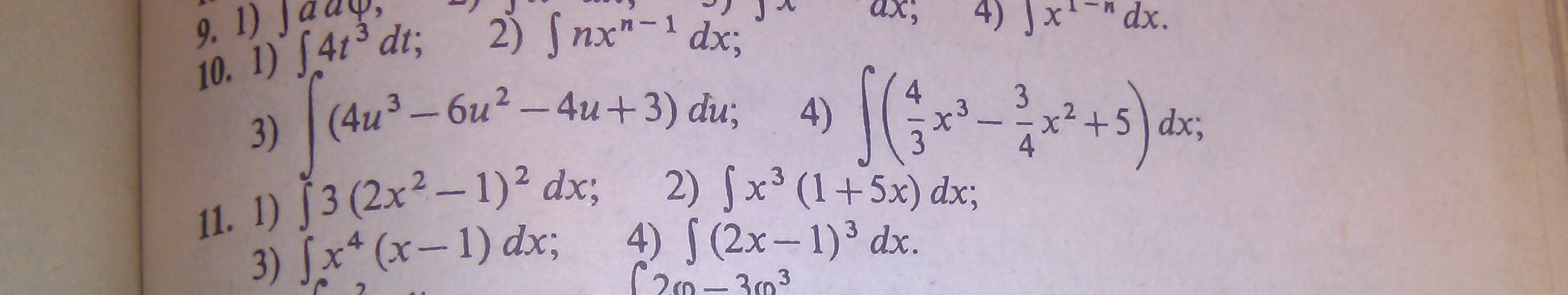 3)∫(4u^3-6u^2-4u+3) du = 4u^4/4-6u^3/3-4u^2/2+3u=u^4-2u^3-2u^2+3u+C