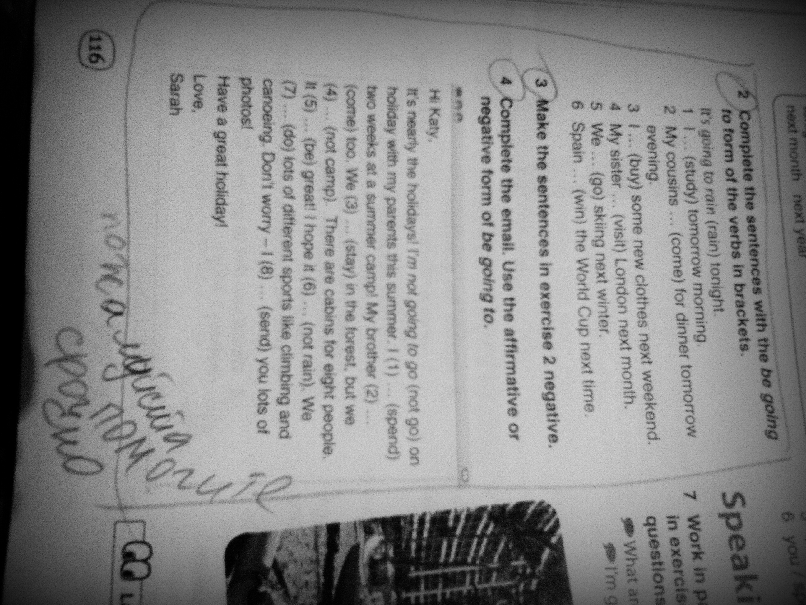 It's nearly the holidays! I'm not going to go on holiday with my parents this summer. I'm going to spend two weeks at a summer camp. My brother is going to come too. We are going to stay in the forest, but we aren't going to camp. There are cabins for eight people. It is going to great! I hope it's not going to rain. We are going to do lots of difference sports like climbing and canoeing. Don't worry -I am going to send you lots of photos!