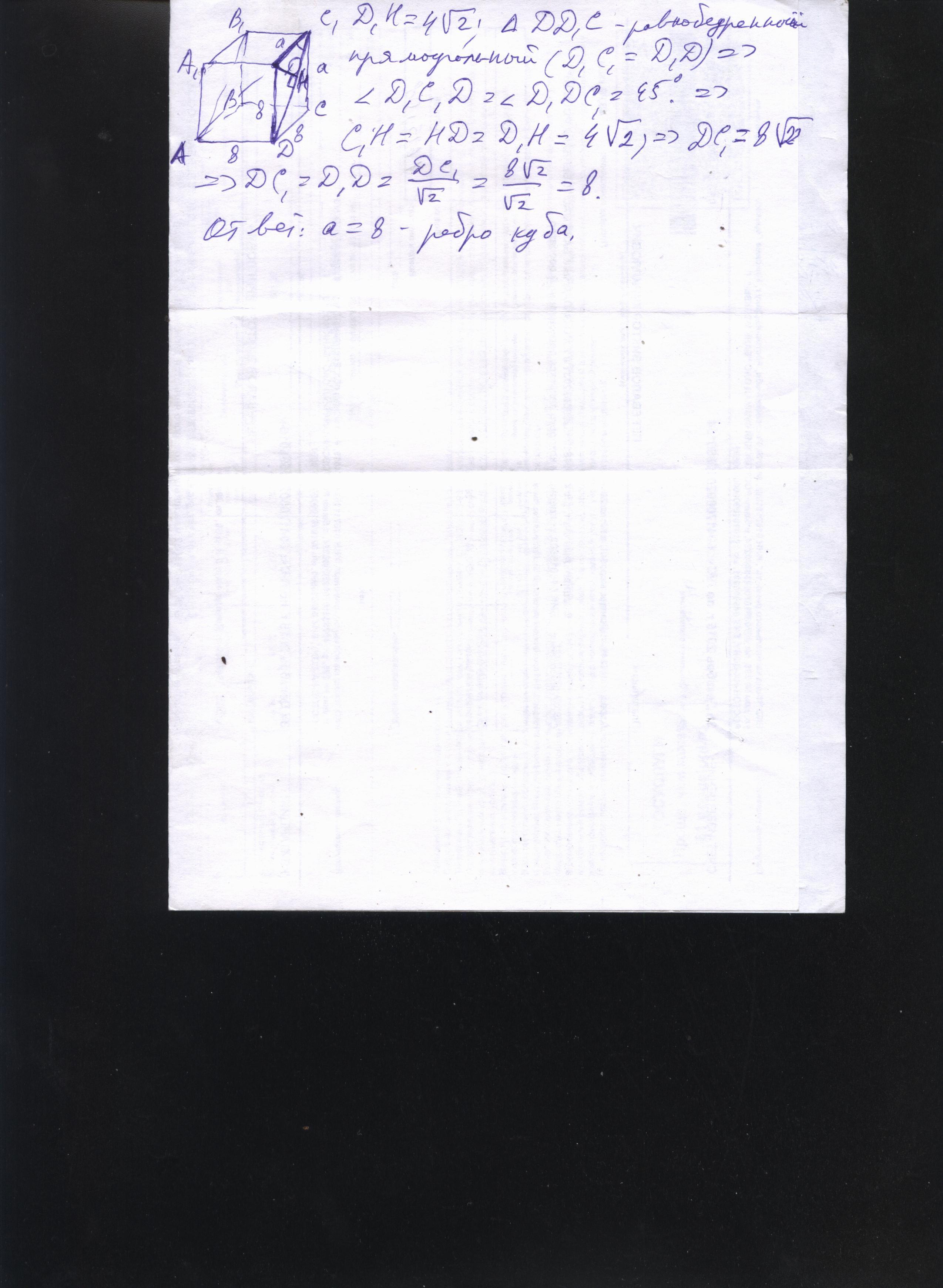 ABCDA1B1C1D1 - куб. Расстояние от точки D1 до плоскости ADC1, равно 4√2 см. Вычислити длину ребра куба.
