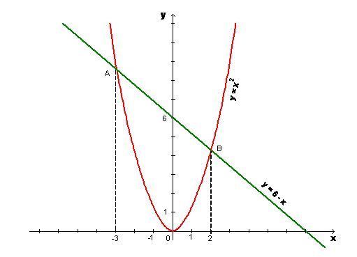 у = х²; квадратичная функция графиком явл. парабола, у = 6 – х линейная, графиком явл. прямая,