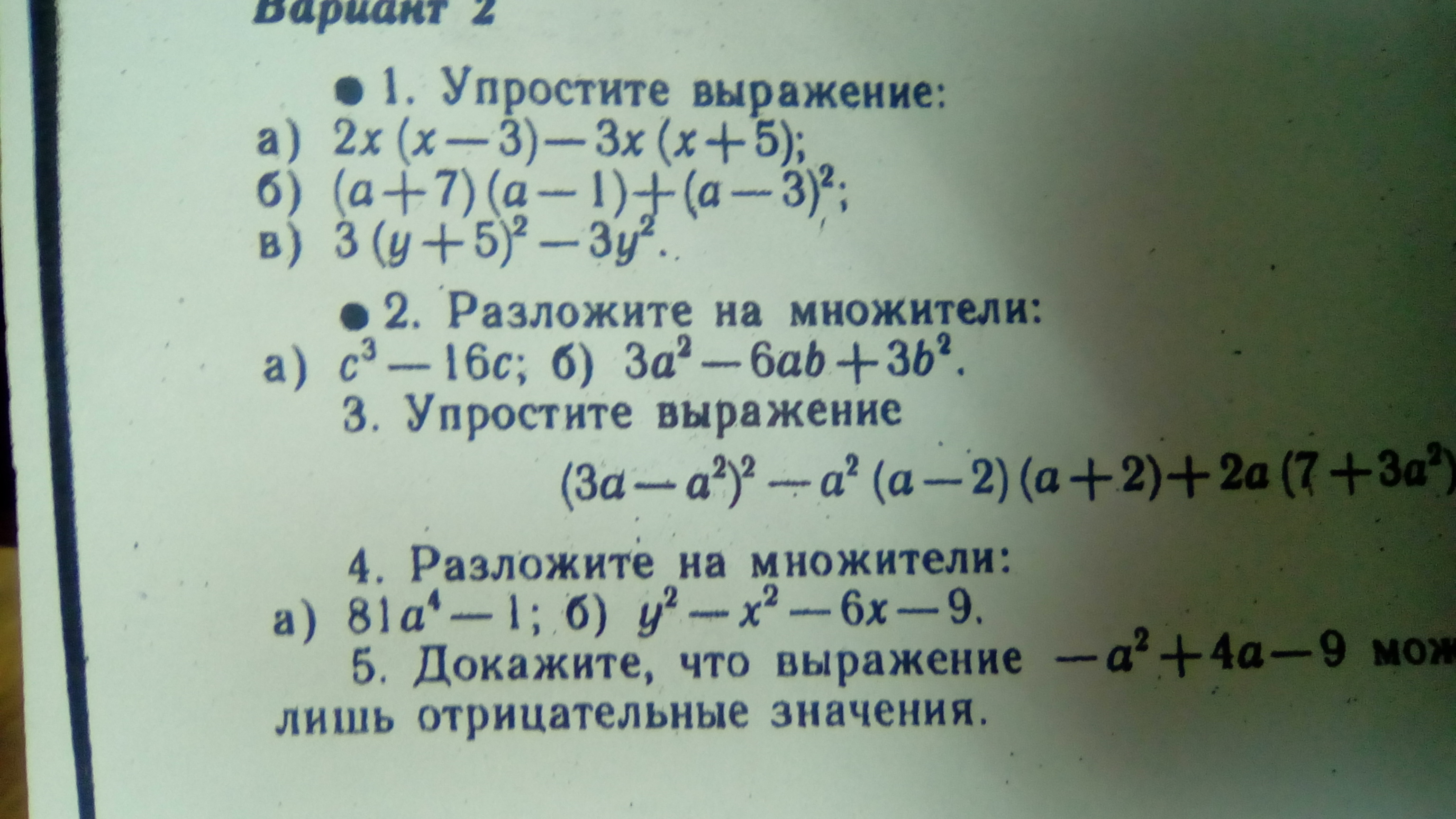 а) 2х(х-3)-3х(х+5)=2х (в квадрате)-3х(в квадрате)-15х