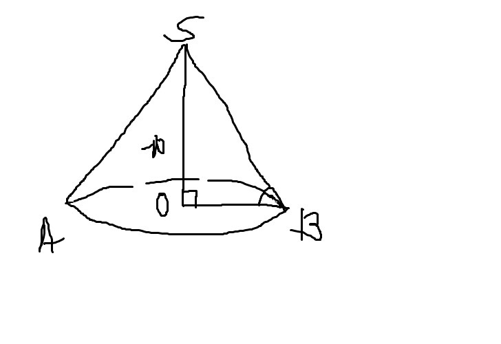 OB=sqrt(SB^2-SO^2)=sqrt(400-100)=sqrt(300)=10sqrt(3)
