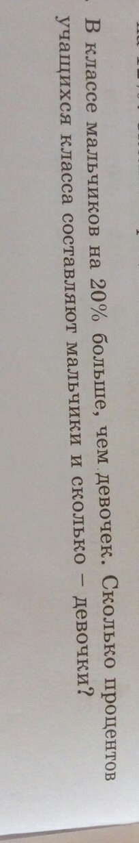 Пусть х% - девочки, тогда мальчиков (20+х)%, всего 100%.