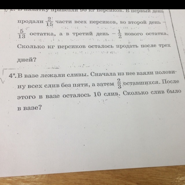 Всего - х 0,5х+(0,5х:2)*2/3+10+5=х 0,5х+1/6х-х=-15 3/6х+1/6х-х=-15 -1/3х=-15:(-1/3) х=45