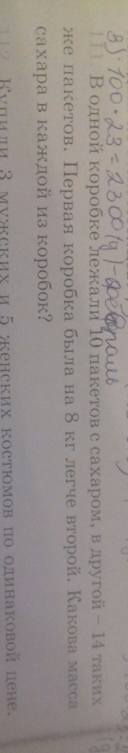 В одной коробке лежали 10 пакетов с сахаром а другой 14 таких же пакетов 1 коробка была на 8 кг легче 2 Какова масса сахара в каждой из коробок