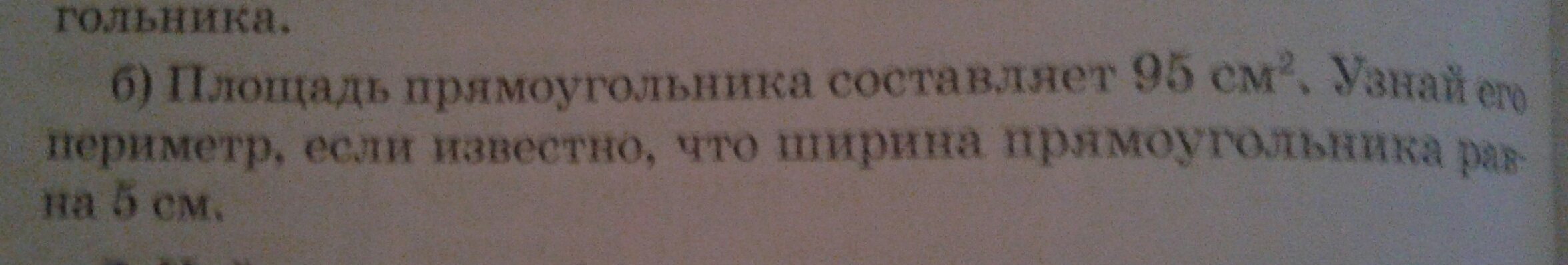 S=a*b Если у нас площадь 95 см.кв., а ширина 5 см, то получается:
