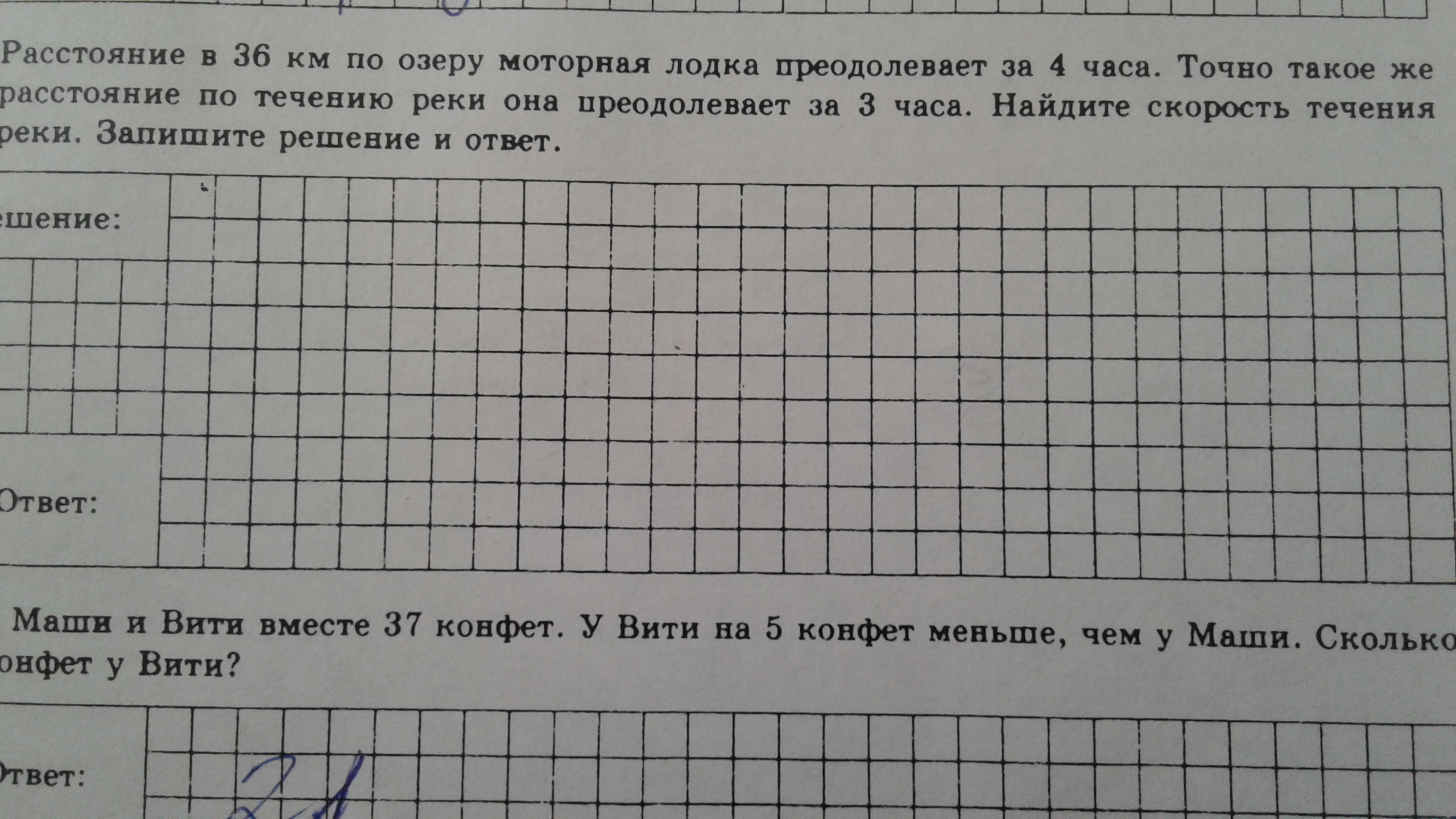 1) 36:4=9(км/ч)-скорость моторной лодки.