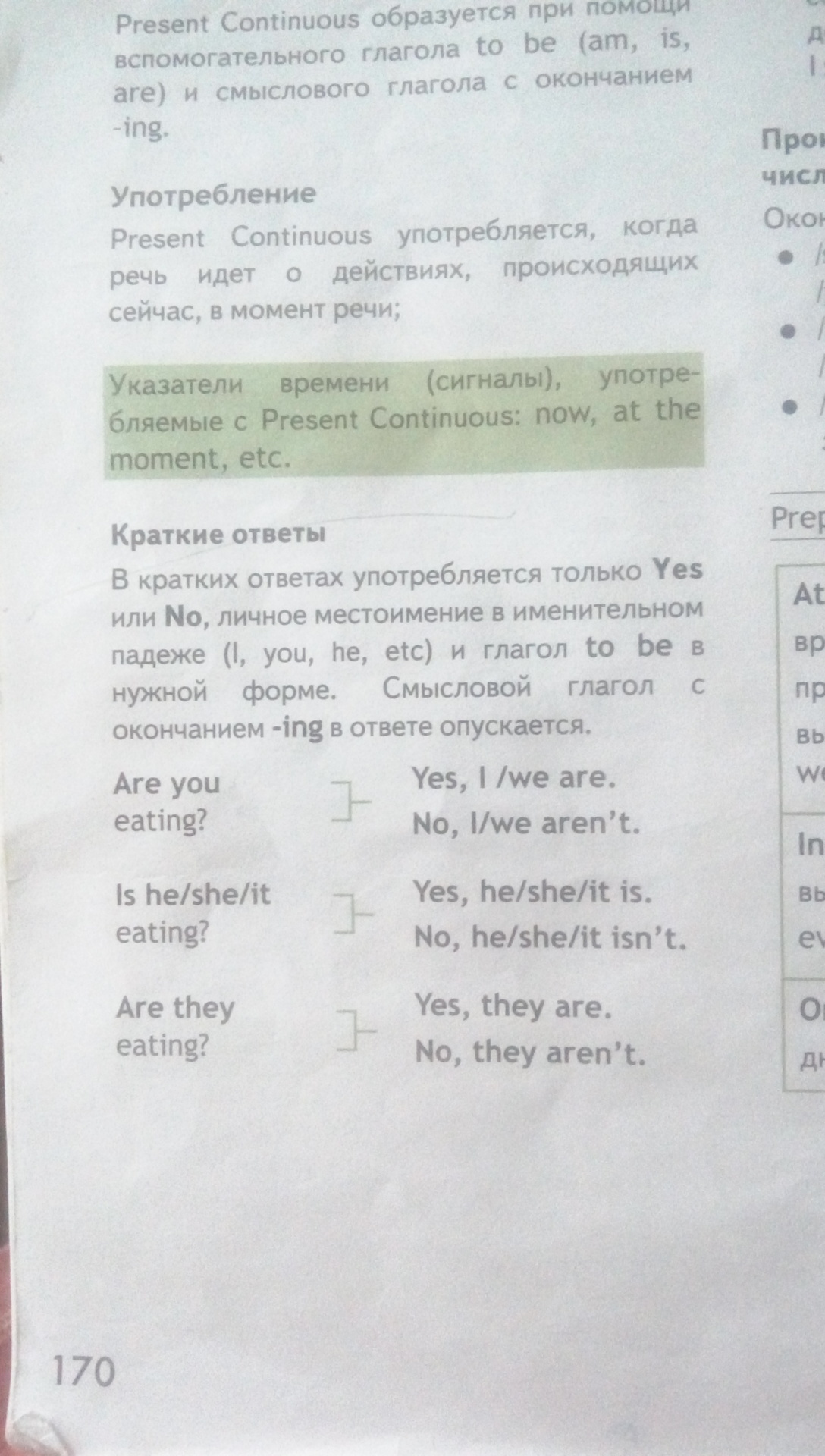 2)Is he/she/it eating? Yes, he/she/it is(он,она,оно ест? да ест) No,he/she/it isn't(нет, он,она,оно не ест)