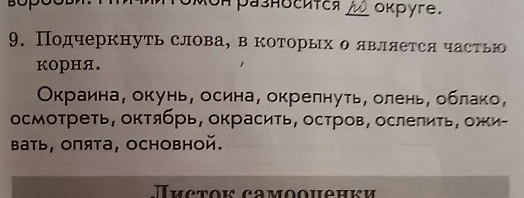 1)О часть корня:окунь,осина,олень,облако,октябрь,остров, основной,опята.