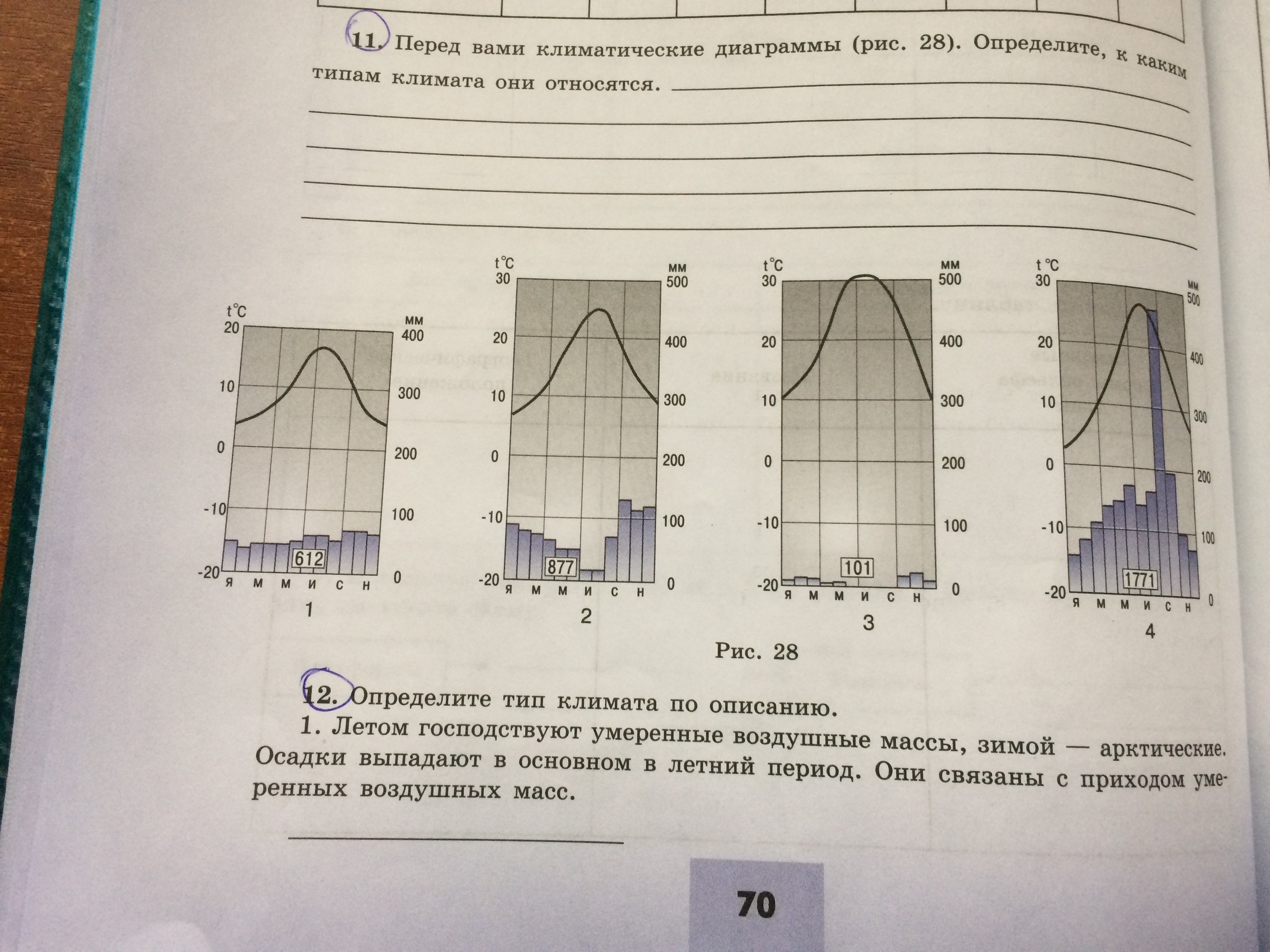 11.)Перед вами климатические диаграммы (рис.28). Определите, к каким типам климата они относятся.