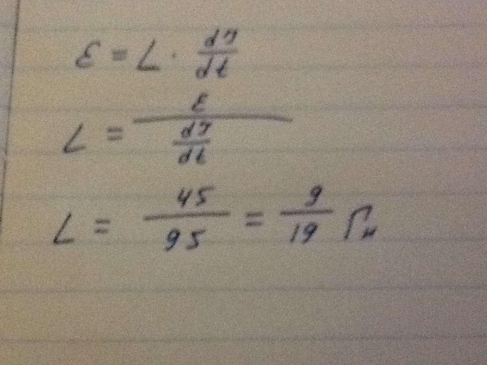 L = Эдс / ( dI/dt ) = 45 / 95 =0,47 Гн