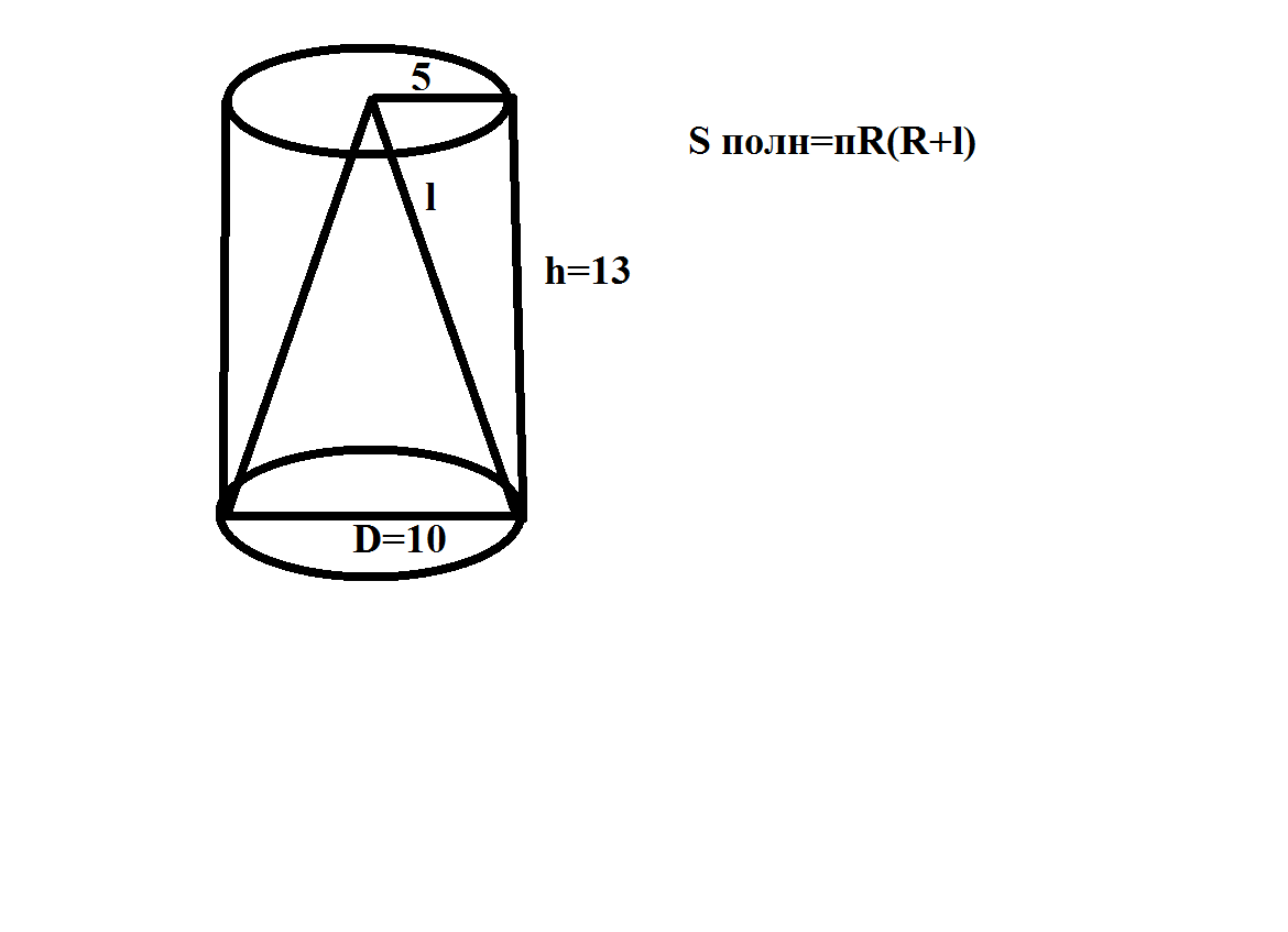 S полн. цилиндра= πR(R+l), где l - образующая конуса