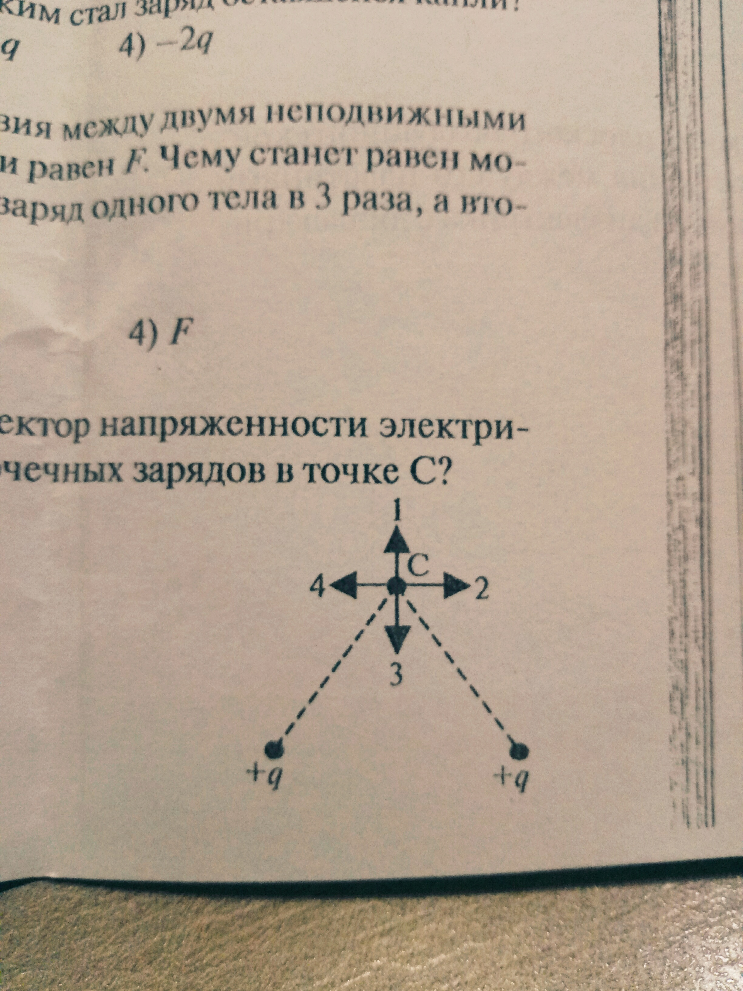 Какре направление имеет вектор напряженности электрического поля двух одинаковых точечных зарядов в точке С?