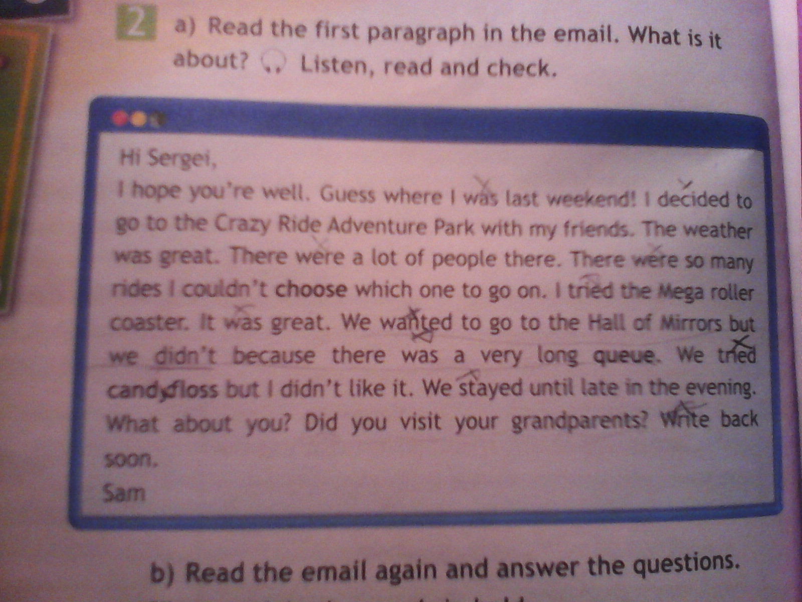 ай трайд зе мега роллер коаст . ит вос грит . ви вонтед ту гоу зе холл оф миррорс бат ви дидант бекоз зеар вос э вери лонг кеар . ви трайд кенди флус бат ай дидант лайк ит . ви стейд антил лейт ин зе ивнинг. вот эбаут ю? дид ю визит ё грендперентс ? рейт бек сун .