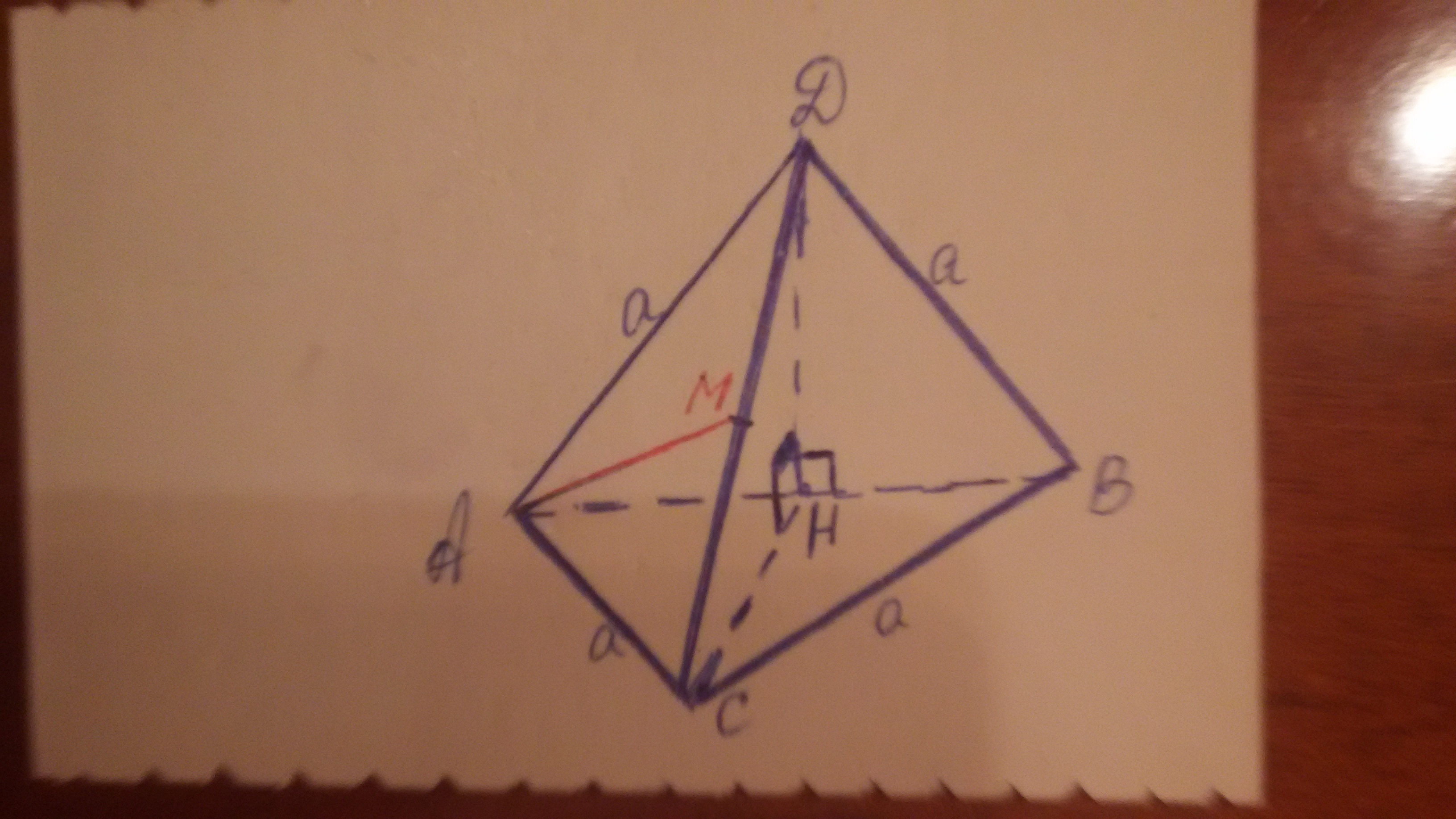 Эта высота одновременно и медиана DM =CM =CD/2 = (a√6) /4.