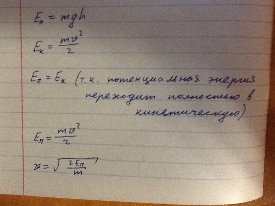 Тело массой 5 кг. свободно падает вниз. Определите скорость тела при ударе о поверхность Земли, если в начальный момент оно обладало потенциальной энергией 490Дж.