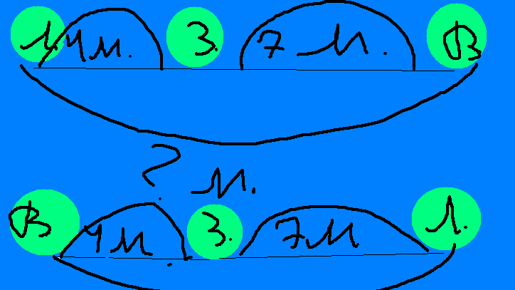 1)7-4=3(м) расстояние между волком и лисой