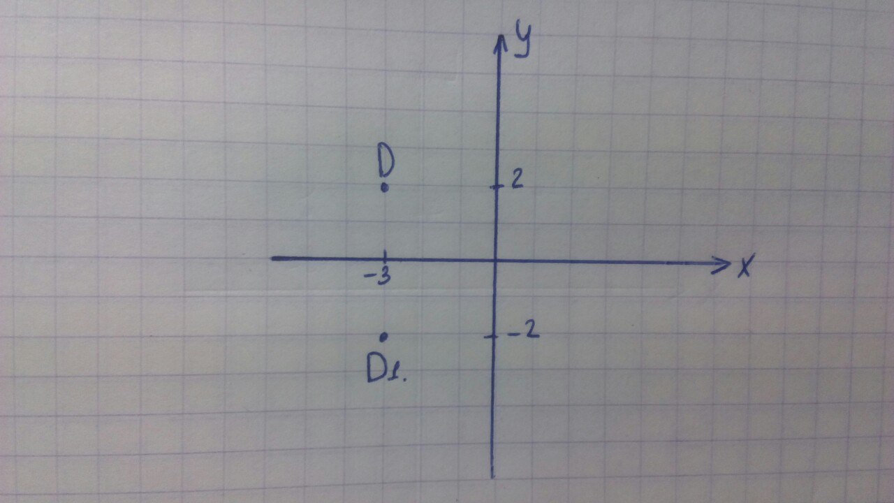 Постройте точку D1, симметричную точке D(-3;2) относительно оси ОХ. Запишите координаты построенной точки.