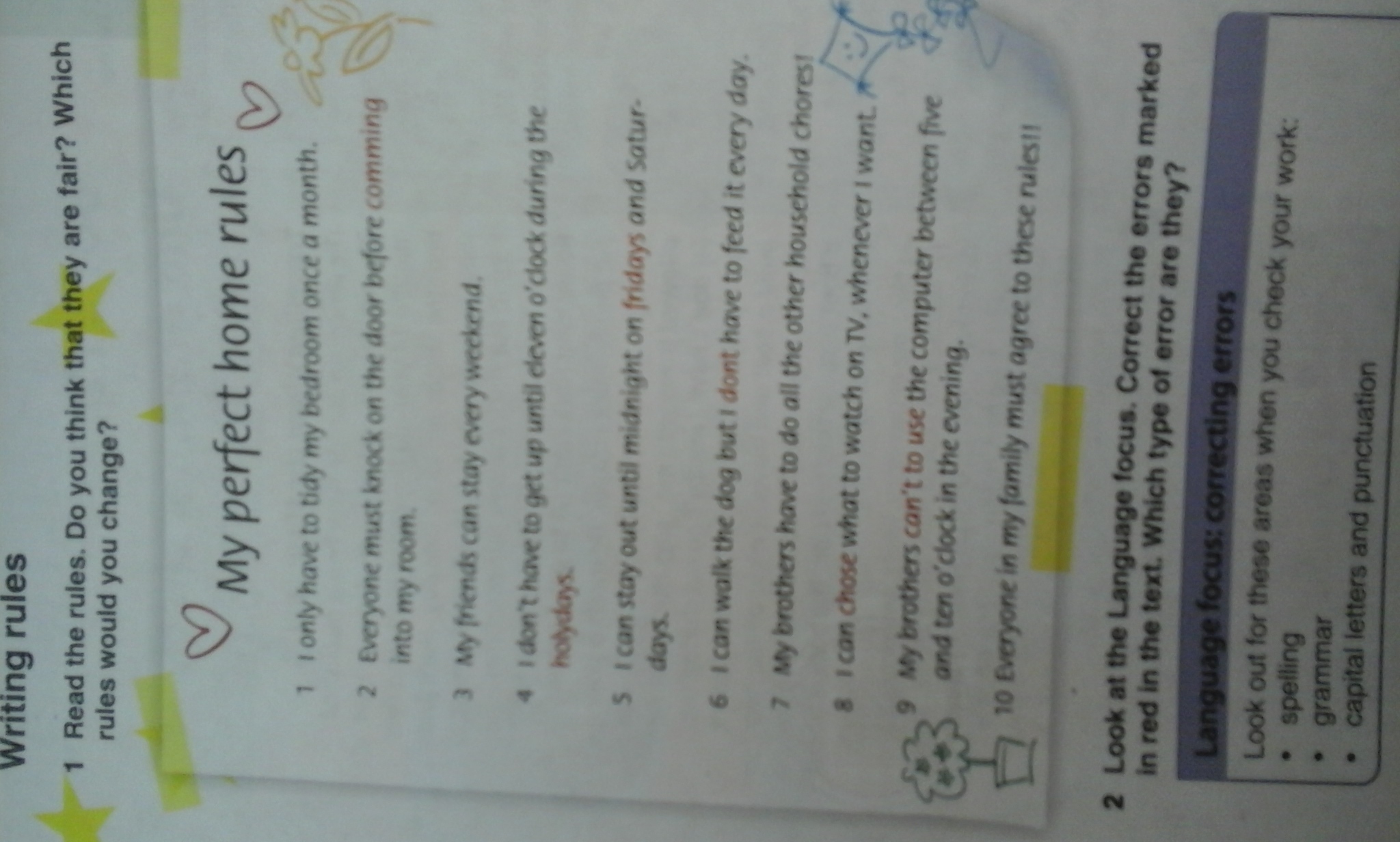9) My brothers can't use the computer between five and ten o'clock in the evening