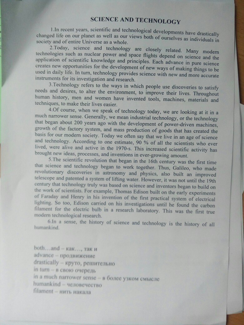 3) Why do we say that we live in the age of science and technology? Today we often say that we live in an age of science and technology. About 90 % of all the scientists of the 1970-s had brought new ideas, processes, and inventions in ever-growing amount. That technology was based on science and inventors began to build on the work of scientists. For example, Thomas Edison, Faraday and Henry and Edison who carried on his investigations until he found the carbon filament for the electric bulb in a research laboratory. This was the first true modern technological research.