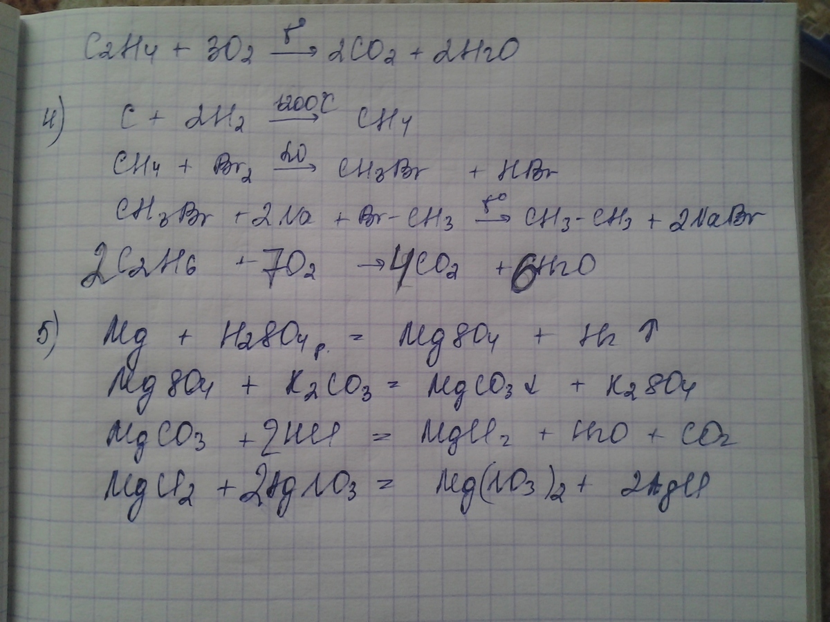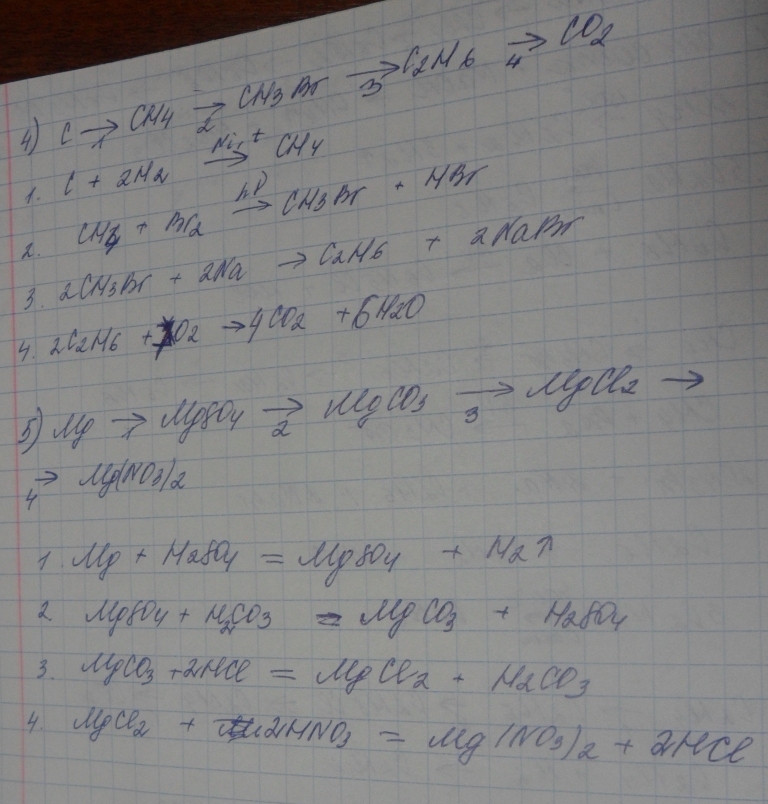 4) C → CH4→ CH3Br → C2H6→ CO2
