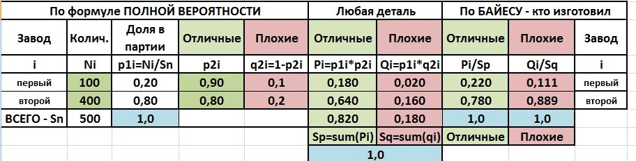 Вероятность, что она сделана первым заводом = 0,111 = 11,1%